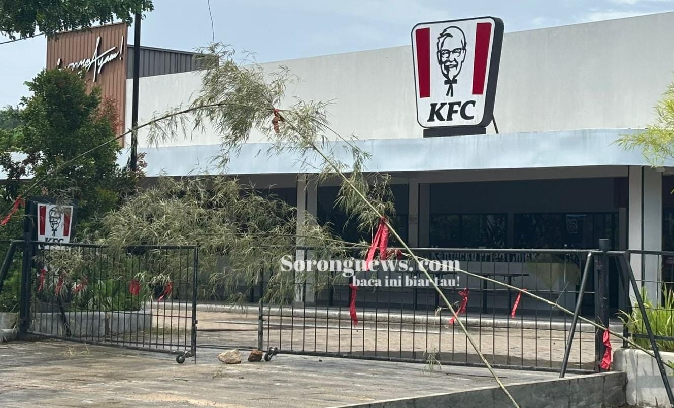 SORONG, PBD – Aktivitas pelayanan KFC Drive Thru yang berlokasi di Jalan Ahmad Yani, Kota Sorong, Provinsi Papua Barat Daya, terhenti sementara akibat aksi pemalangan yang dilakukan oleh sekelompok orang, Rabu (4/2/2026).