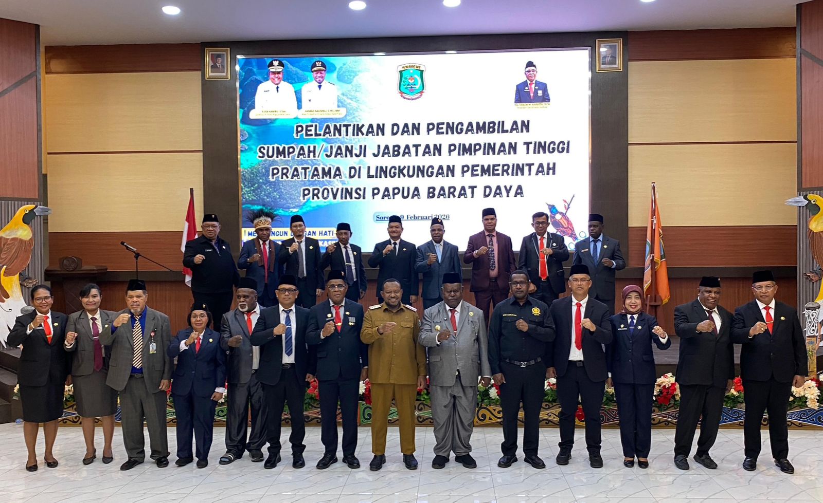 SORONG, PBD – Gubernur Papua Barat Daya Elisa Kambu secara resmi melantik dan mengambil sumpah 21 pejabat eselon II di lingkungan Pemerintah Provinsi Papua Barat Daya (Pemprov PBD) bertempat di Ruang Rapat Lantai 3 Kantor Gubernur PBD, Kota Sorong, Senin (9/2/2026).